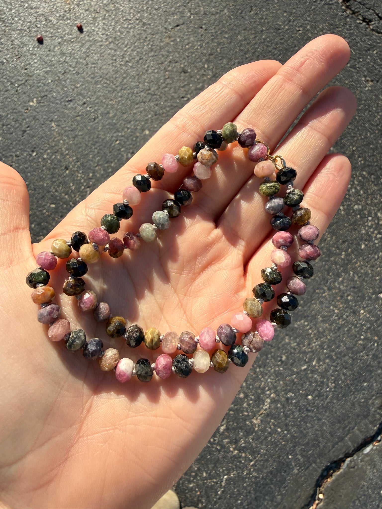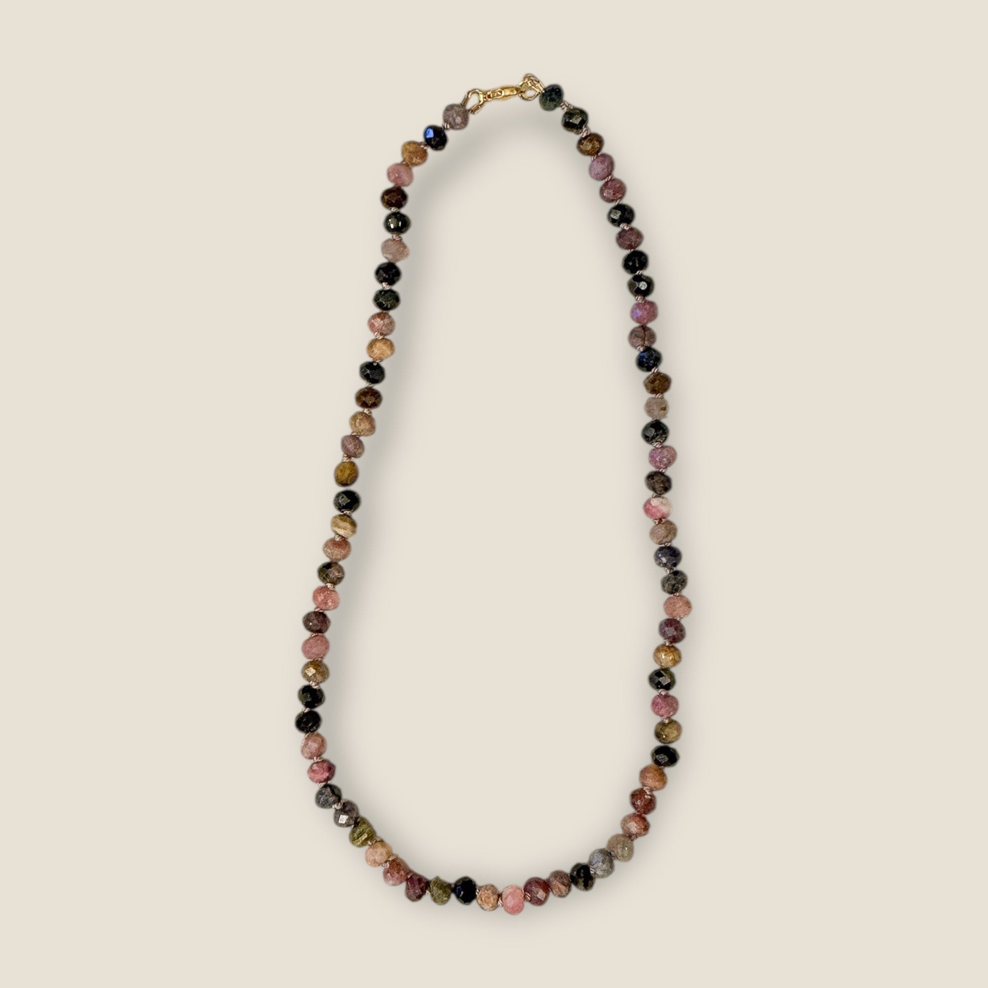 Faceted tourmaline beads hand-knotted to make this beautiful necklace.